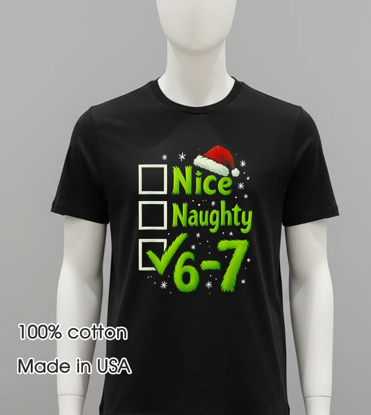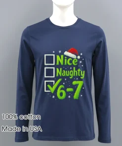Remember when “dopamine dressing” became the buzzword of the year, all about wearing clothes that genuinely spark joy? Or how “vintage revival” has swept through street style, bringing back those effortlessly cool, slightly ironic vibes? Well, this Christmas, we’re taking it a step further. Imagine Sarah, a marketing intern from Austin, Texas. She’d seen the “nice vs. naughty” debate pop up everywhere, from late-night talk show skits discussing holiday gift choices to that viral social media post of a celeb joking about their own “naughty list” fashion choices. As the holiday season drew near, Sarah was dreading the annual office “ugly sweater” party. She wanted something festive, sure, but also something genuinely funny and a little more her. Something that felt current, tapping into that unique American humor that blends internet culture with classic traditions. She wasn’t into the itchy, bulky sweaters; she wanted comfort chic that still turned heads. That’s where the 6 7 Meme Nice Naughty 67 Christmas Shirt steps in, perfectly positioned for anyone who wants to embrace the festive mood with a wink and a smile. It’s for the person who loves a good meme, appreciates a soft tee, and wants to stand out without trying too hard. This shirt is more than just fabric; it’s a conversation starter, a nod to pop culture, and a genuinely comfortable piece that fits right into today’s casual-yet-curated American fashion landscape. Think less “grandma’s closet” and more “effortlessly cool Christmas party MVP.”