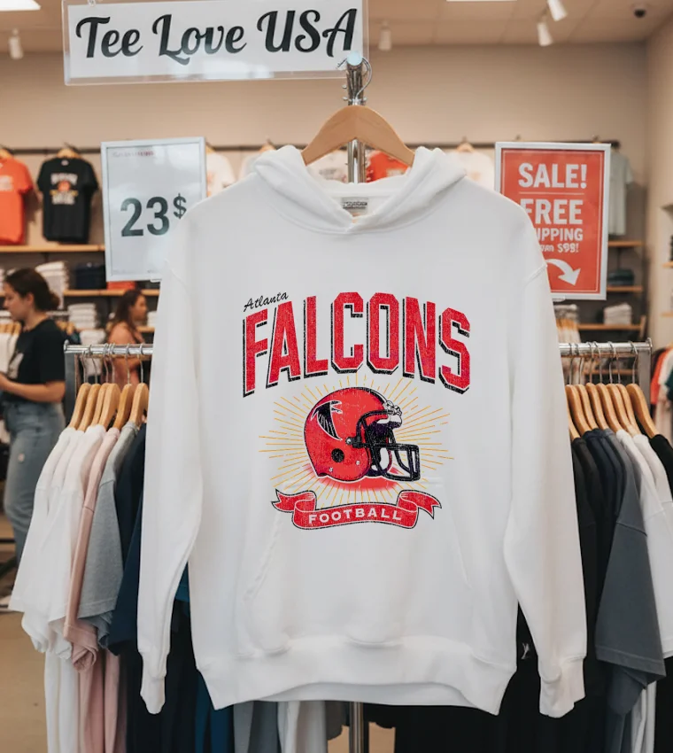 Okay, so I’m not usually one for sports memorabilia, but this particular shirt… it’s got this amazing, almost accidental, grunge aesthetic. It’s not just a print, you know? It’s a faded, worn-looking image of a Falcons helmet, like it’s been through a couple of seasons itself – or maybe a few too many washes in my grandpa’s old top-loading machine. The colors are muted, almost sepia-toned in places, and there are these little, almost imperceptible cracks in the paint that add to its weird charm. I saw it hanging in a dusty antique shop in Athens last summer, tucked between a stack of moth-eaten band tees and a chipped ceramic dog. It wasn’t screaming for attention, it was just…there. Waiting.