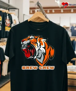 Let’s talk about that design, because it’s not just slapped on there. The fierce Bengals tiger, intertwined with the “Beer and Brews Brew Crew Can Crusher” tagline, speaks volumes. It’s aggressive yet playful, capturing the untamed spirit of the jungle and the convivial atmosphere of your favorite taproom. Wearing this shirt isn’t just showing support; it’s a declaration of pride in your team and your good taste. It says, “I’m here for the action, and I know how to have a good time.” This T-shirt is more than apparel; it’s a mood. To keep that spirit vibrant, a simple cold wash and low tumble dry will do the trick – just like you care for your favorite glassware, treat this tee with a little love, and it’ll be your trusty companion for countless memorable moments, from nail-biting finishes to relaxed backyard hangouts.