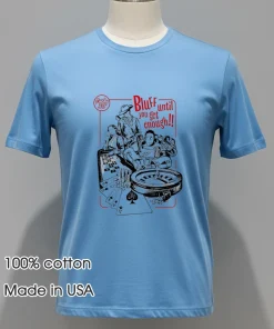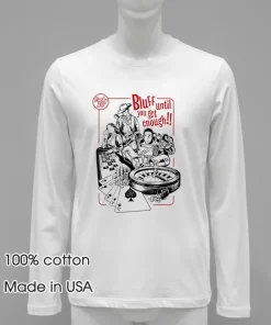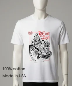 Let’s talk specs, because details matter, right? The Bluff Until You Get Enough Vintage Shirt is crafted from premium 100% American Cotton, ensuring not just comfort but also durability. It’s incredibly soft, perfectly stretchy, and oh-so-breathable – ideal for those busy days or just lounging around. Priced at an unbeatable $23 USD, it’s an accessible piece of high-quality style. Plus, with speedy 3-5 day delivery right to your US doorstep, you won’t be waiting long to rock this Vintage, Streetwear, American-style gem.