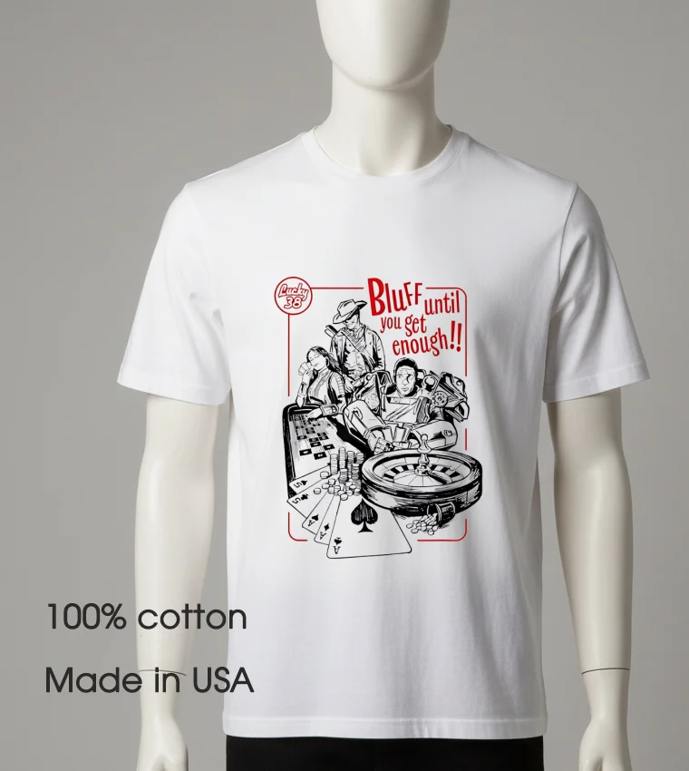 #VintageTee #BluffUntilYouGetEnough #AmericanStreetwear #FashionStatement #EverydayStyle