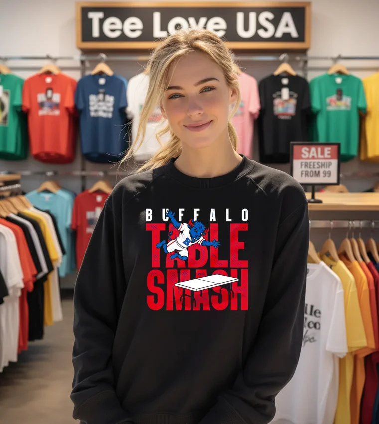 It certainly wasn’t a subtle piece of clothing, not that anyone would expect subtlety at a Thanksgiving dinner with Aunt Mildred’s fire-starting casserole. The bold lettering, the somewhat alarming mascot – it demanded attention. And in the midst of the post-table-smash mayhem, it somehow managed to command the entire room’s attention, if only for a brief, stunned moment. A silent, slightly scorched witness to the destruction. That Buffalo Table Smash Mascot Shirt, a completely random and bizarre detail, now holds a larger, unexpected significance for me. It’s a funny story to tell, a quirky memory that manages to bring a smile to my face even now.