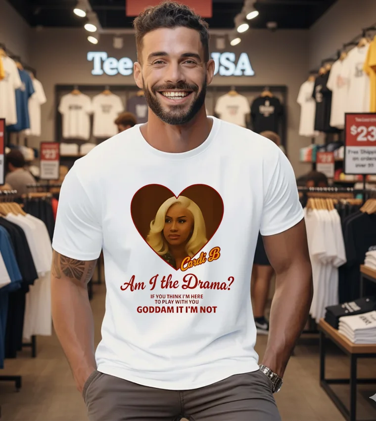 Remember that time everyone was glued to their screens for the latest reality TV reunion, or maybe scrolling through TikTok watching some wild, totally unscripted family drama unfold? There’s always that one moment where someone, usually with wide eyes and a hand on their chest, asks the loaded question: “Am I the drama?!” Cardi B, in her own iconic, unfiltered way, just perfectly encapsulated that universal feeling. It’s not just a phrase; it’s a whole vibe, a cultural moment! Think about it: you’re at a BBQ in July, sizzling burgers on the grill, the kids are running wild, and Aunt Carol is giving you that look because you brought potato salad with too much dill. Or maybe it’s Tuesday night, you’re on a Zoom call for work, and suddenly the “reply all” email chain explodes over a misplaced stapler. Whoops. You can just feel that energy, right? That moment when you’re caught between a rock and a hard place, or just playfully owning your role in the chaos. That’s exactly when this shirt comes alive. It’s for the person who navigates life’s hilarious, sometimes frustrating, and often dramatic moments with a wink and a smile. It’s not just for a specific event like a concert or a themed party, though it would totally slay there too. It’s for those everyday moments when you need to lighten the mood, or simply make a statement without saying a word. It’s for the person who finds the humor in life’s little skirmishes, the one who’s always ready to bring the fun, whether they intended to be “the drama” or not.