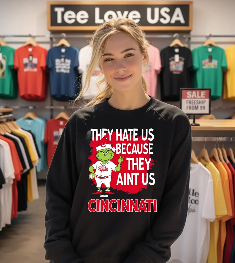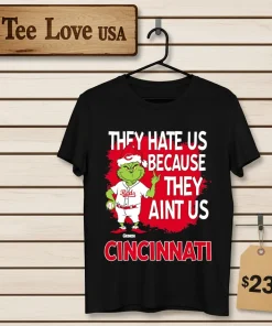 Okay, so maybe I’m a little biased. My grandpa, bless his cotton socks, was a die-hard Reds fan – a season ticket holder for over forty years, rain or shine, even when the team was, shall we say, less than stellar. He’d wear his Reds hat everywhere; even to my awkward teenage birthday parties. So, when I saw this “Cincinnati Reds Grinch Christmas: They Hate Us, Ain’t Us” shirt, a wave of nostalgia, mixed with a healthy dose of subversive amusement, washed over me. It’s not your typical saccharine Christmas merch; it’s got an edge, a bit of a grumpy, underdog spirit that somehow feels perfectly in line with the Reds’ often-tumultuous history.