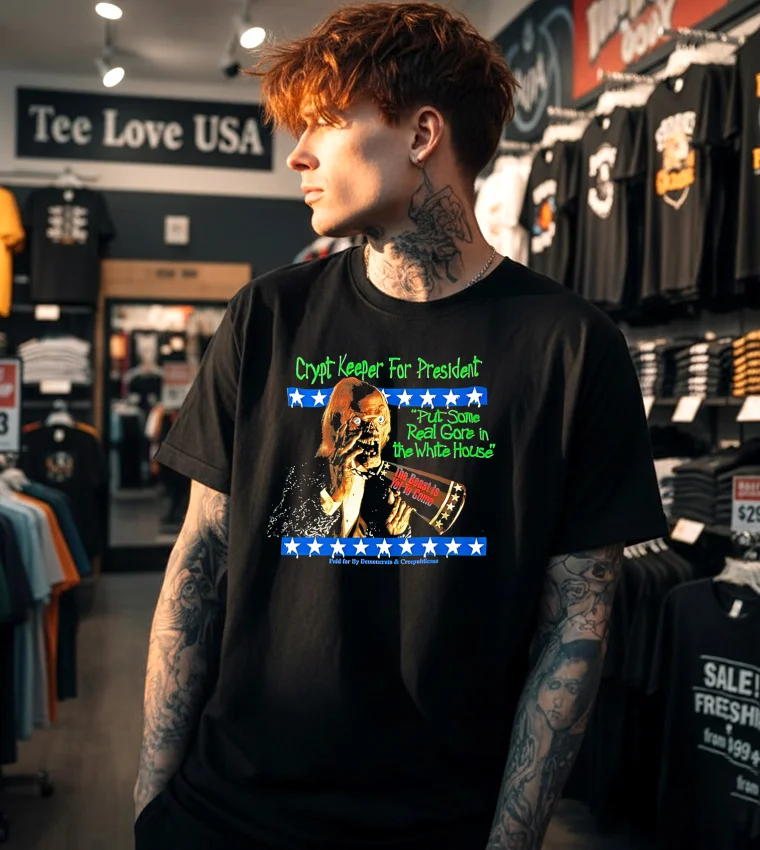 Ugh, this morning was a disaster. Spilled coffee all down my white shirt, traffic was a parking lot, my phone buzzed incessantly with work emails – then I overheard some seriously juicy gossip about Brenda from accounting getting a promotion… and wouldn’t you know it, just as I’m grabbing a granola bar for breakfast, I see this guy helping an old lady cross the street, and it was just… oddly sweet, you know? Made me smile. Then, boom, I saw it – an ad for Tee Love USA and this totally awesome Crypt Keeper For President Paid By Democrats Creepublicans Shirt. It was like the universe was trying to balance out the morning’s chaos with some seriously dark humor.