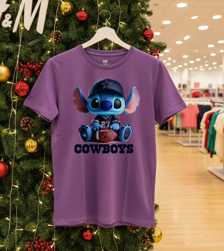 I remember watching the NFL draft this year, glued to the TV like millions across the country, buzzing with excitement for what the new season would bring. The analysts were all fired up about the Cowboys’ potential, and a buddy of mine, a die-hard fan, was already texting me about game day plans. He’s the kind of guy who lives and breathes football, and every Sunday he’s decked out head-to-toe in silver and blue. We were talking about what we’d wear to our next watch party – maybe at a sports bar downtown, or even just kicking back on his porch with a grill fired up. “Man, I need something fresh,” he said, “something that screams ‘America’s Team’ but also has a bit of my personality.” That’s exactly when the image of the Dallas Cowboys Nfl Stitch Cartoon Football Shirt popped into my head. This isn’t just for game day anymore; it’s perfect for casual meet-ups, tailgates, or even just grabbing coffee when you want to subtly rep your team. Imagine wearing this to a backyard BBQ, sparking conversations, or even at one of those increasingly popular watch parties that are popping up in local breweries all over the US. It’s about bringing that stadium energy to your everyday, whether you’re catching a concert in the park or just running errands. This shirt is for anyone who loves the Cowboys and wants to share that joy with a fun, fresh twist.