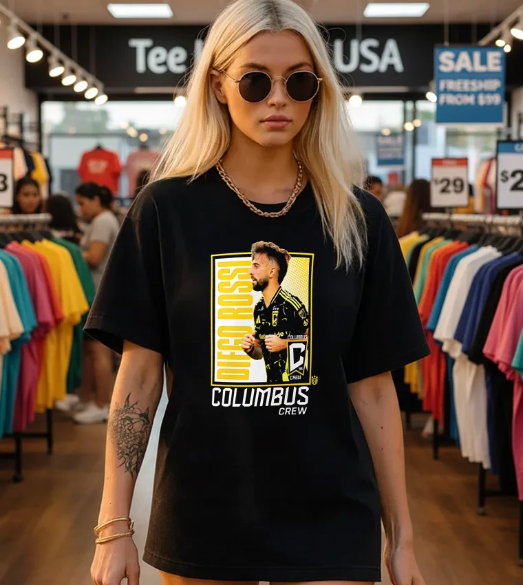 Now, let’s talk about the heart of this tee: its design. It’s not some flimsy print that’ll crack after a couple of washes, nope. We’re talking about a vibrant, crisp graphic that beautifully captures the essence of the Columbus Crew and their star player, Diego Rossi. Look closely at the bold typography, the dynamic player representation – it’s designed to pop, to grab attention in the best way possible. When you pull this shirt over your head, there’s an instant sense of belonging, a quiet pride that settles in. It’s like putting on your favorite lucky charm, but this charm also broadcasts your passion for the game and your loyalty to the Crew. You’re not just wearing a name; you’re embodying the spirit of a team that fights hard and represents a city with immense passion.