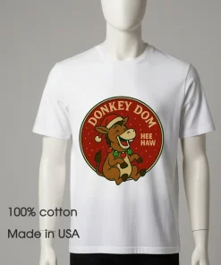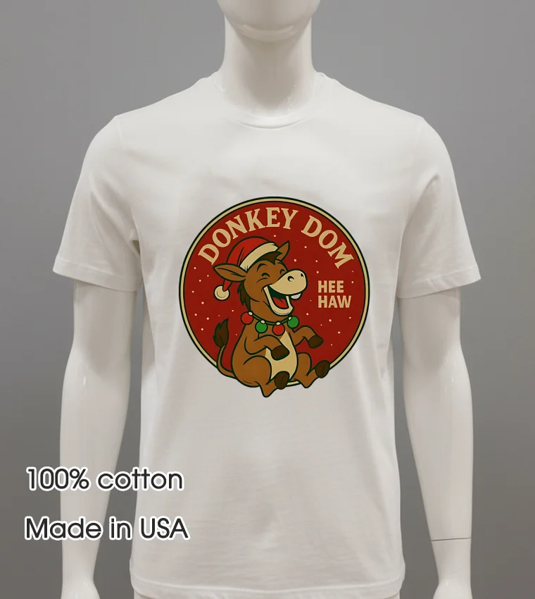 Now, let’s talk about that design. The central donkey graphic, ‘Dom’ himself, isn’t just an animal; it’s bursting with personality, a real character that makes you smile! The “Hee Haw” just adds to the charm, doesn’t it? This isn’t your grandma’s quiet Christmas shirt; it’s a confident, joyful piece that instantly elevates your mood. Imagine standing out in a sea of generic holiday wear! And the feel? Oh, it’s just so soft! Crafted from premium American cotton, it’s breathable, flexible, and feels amazing against your skin, perfect for all-day wear. The vintage, streetwear style means it pairs effortlessly with your favorite jeans, comfy leggings, or even layered under a cozy flannel. It’s truly a versatile staple for the holiday season. Perfect gift for that friend who loves a good laugh, or a special treat for yourself!
