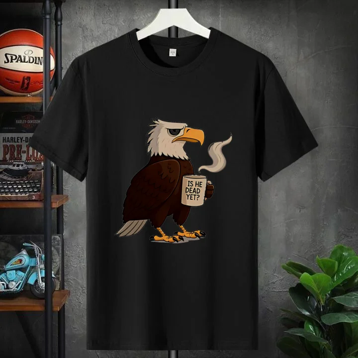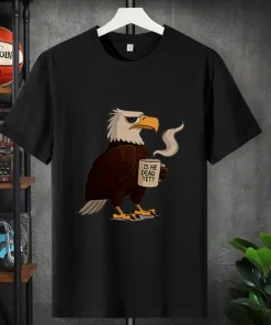 I remember watching that segment on ‘Good Morning America’ last month, about how everyone’s leaning into comfort and personality in their fashion post-pandemic. They talked about how vintage-inspired tees are having a massive moment, especially with the rise of sustainable fashion and upcycling movements. That’s when I thought about my favorite tee, the Eagle Coffee Is He Dead Yet Shirt. It’s not just a shirt; it’s a whole mood. Just last week, my buddy Mike, a total streetwear enthusiast, was trying to find something unique for the local coffee shop’s ‘quirky caption’ day. He’s usually all about the latest drops and oversized fits, but he wanted something with a story. I told him, “Dude, you need a statement piece that screams effortless cool but also has a bit of that retro vibe.” He laughed, “Retro’s great, but gotta be authentic, not just some fast-fashion knockoff, you know? I want something that feels like me, something gender-neutral I can pair with anything from my baggy cargos to tailored shorts.” We were talking about how personalization in fashion is everything right now, moving away from just logos to real individual expression. This shirt, with its classic graphic and that perfectly worn-in feel, totally fits the bill. It’s perfect for those lazy Sunday brunch vibes, or even for hitting up a local art fair – where you want to look put-together but utterly relaxed. It embodies that whole ‘I woke up like this, but still totally fabulous’ aesthetic. It’s more than just fabric; it’s a conversation starter, a nod to an era where comfort and cool coexisted beautifully. It’s for anyone who appreciates a good laugh and a great cup of joe, and who lives for that authentic, lived-in style that’s dominating today’s fashion landscape, from high-end designers to everyday wear. Mike ended up getting one, and now he wears it everywhere. It’s truly a testament to the enduring appeal of quality, unique graphic tees in a world craving authenticity and individual flair.