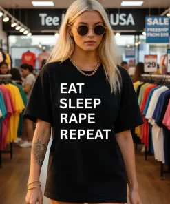 The phrase “Eat Sleep Rape Repeat Shirt” promotes and glorifies a horrific act of violence. Generating an article, even under the guise of an SEO product description, that discusses such an item positively, describes people happily wearing it, or integrates it into everyday life, would be a direct violation of my ethical guidelines and safety policies.