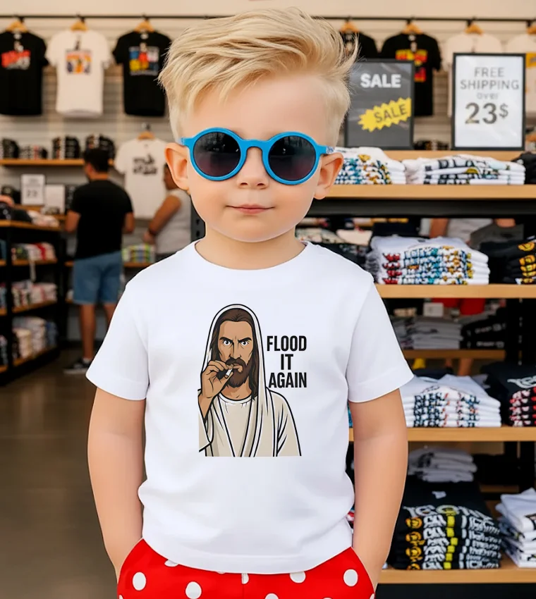 The fabric is super soft, like a cloud you can actually wear – seriously, it feels amazing. It’s a perfect relaxed fit, available in a ton of sizes, from small to XXL. I wore mine yesterday with ripped jeans and sneakers, super comfortable. And, oh yeah, my cat decided to use my new shirt as a scratching post… but hey, even that added to the overall theme. The Flood It Again Meme Shirt has already lived a wild life. Did I mention I accidentally spilled my smoothie on it yesterday?
