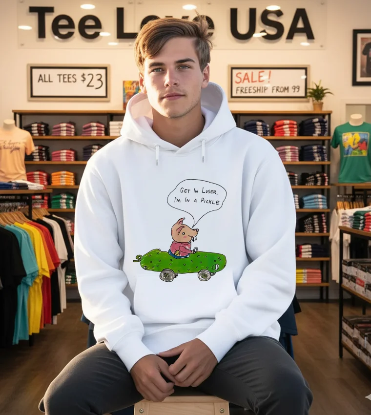 Remember that disastrous camping trip last summer? The one where the rain decided to stage a full-blown monsoon right over our pathetically inadequate tent? Well, amidst the soggy sleeping bags and the general feeling of impending hypothermia, I saw it – a t-shirt design idea practically screaming for attention. Get In Loser I’m In A Pickle Funny Pig Driving A Pickle Car Shirt, I scribbled in my sodden notebook, the ink bleeding slightly like a particularly dramatic watercolor. The image of a tiny pig, utterly unconcerned, steering a ridiculously oversized pickle-shaped car just wouldn’t leave my head. It was absurd, a perfectly ridiculous antidote to the miserable reality of damp socks and lukewarm instant coffee.