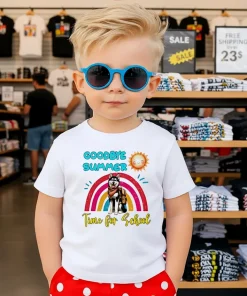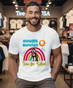 Let’s slow down for a second and appreciate the subtle genius of this shirt’s design. It’s not just a graphic; it’s a mood. Picture it: a whimsical, friendly dog, perhaps a golden retriever or a lab, with a slight, knowing smile, framed by the words “Goodbye Summer” and “Hello Fall Time For School.” The colors are often muted, earthy tones that just scream autumn – think burnt oranges, deep greens, and warm browns – making it incredibly versatile. This isn’t some flashy, in-your-face design; it’s understated elegance with a touch of playful charm. When you wear this shirt, you’re not just wearing a piece of clothing; you’re wearing a story. It evokes that cozy, nostalgic feeling of autumn, sparking conversations and smiles wherever you go. “Oh, I love your shirt! Is that your dog?” someone might ask, instantly creating a connection. It’s a badge of honor for anyone who understands the unique rhythm of the American academic calendar and the role our pets play in our lives. To keep that beautiful design vibrant, a quick tip: wash it inside out in cold water, and tumble dry low. It’s a simple step that ensures this companion piece will be with you through many more seasons to come, becoming a cherished part of your fall wardrobe.
