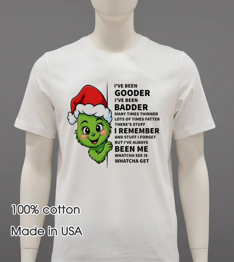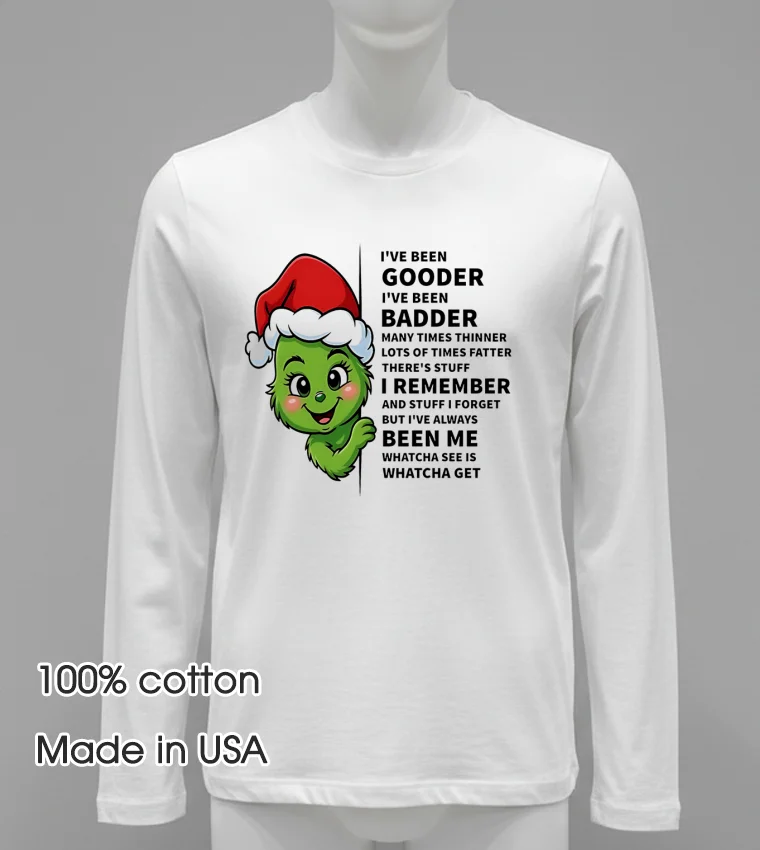 Honestly, this shirt? The Grinch I Ve Been Gooder I Ve Been Badder Many Times Thinner Lots Of Times Fatter There S Stuff Shirt just gets me. It instantly brought to mind a viral TikTok I saw after the Met Gala buzz, where a real celebrity (I won’t name names!) confessed how exhausting it is to always be perfectly “on.” She shared how sometimes, you just want to wear something that screams, “I’m human, I’m flawed, and I own it.” And boom – that’s exactly what this Grinch tee embodies for me. This isn’t just a holiday shirt; it’s a statement for any day you feel like life’s been a bit of a mixed bag. It perfectly taps into the current authenticity trend, a pushback against those hyper-curated social feeds. Like me, juggling everything, some days you feel gooder, others, well, a bit badder. This tee is for anyone embracing personalized style, where comfort wear meets self-expression. It’s ideal for casual meet-ups, coffee runs, or just lounging at home. Forget fleeting micro-trends; this design resonates deeper, a sense of humor about our own journey. Plus, in today’s focus on sustainable fashion, choosing a tee you truly love and will wear repeatedly is a great eco-conscious choice. It’s playful Americana, perfectly imperfect, just like us.