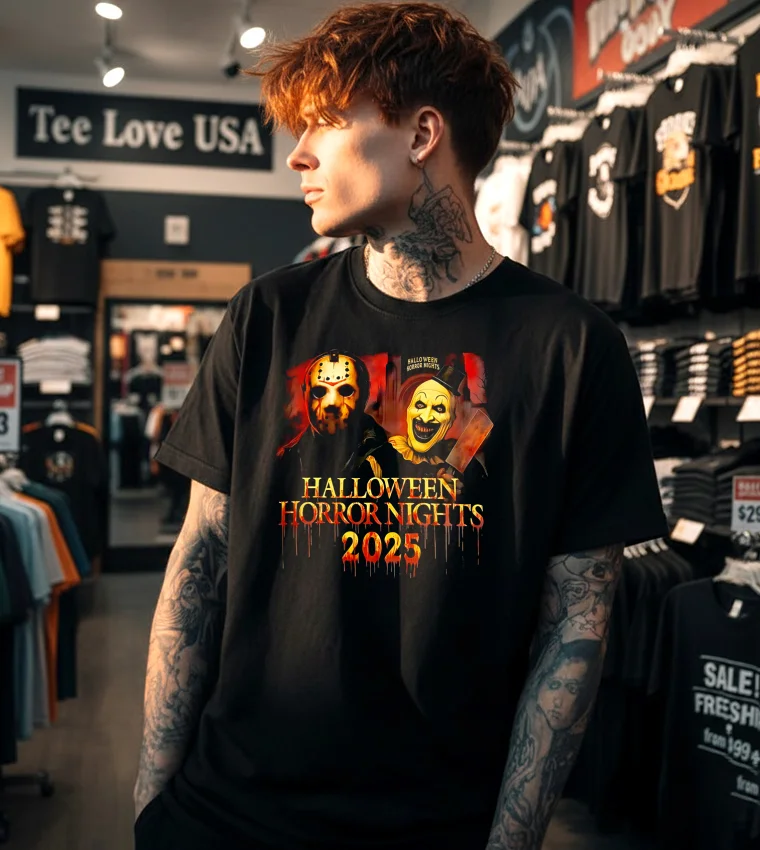 Okay, so let’s set the scene. Just last week, I was scrolling through my feed, and there was that viral clip of Billie Eilish, right? She was talking about her love for unique graphic tees, even mentioning how much she’d love to hit up a themed event like a horror movie marathon. That got me thinking about the hype around Halloween Horror Nights 2025 T Shirts. It’s not just a theme park event anymore; it’s a whole cultural phenomenon that kicks off the autumn vibes across the U.S. From East Coast to West Coast, people are already buzzing. My friend Maya, she’s a massive horror movie buff – you know, the kind who plans her entire October around watching classic slashers and finding the best haunted houses. She’s already got our group chat blowing up with ideas for our trip to Universal next year, and honestly, the fashion element is a huge part of it for us. We want to show up representing! It’s not just about the scares; it’s about the shared experience, the Instagram-worthy moments, and the perfect outfit to capture that energy. This year, the excitement feels even bigger, with whispers about new houses and iconic villains making a return, not to mention the resurgence of 90s horror aesthetics in everything from streetwear to movie reboots. We saw how much everyone loved the ’80s throwback vibes at last year’s event, and the demand for exclusive merch was insane. With spooky season trends already popping up on TikTok and major fashion brands embracing darker aesthetics, people are looking for unique ways to express their love for all things eerie, well ahead of time. Imagine walking through the fog-filled streets, the screams echoing, and you’re rocking a shirt that perfectly encapsulates that spirit. This isn’t just for the actual event; it’s for showing off your horror fandom at conventions, for movie marathons with friends, or just adding a touch of macabre cool to your everyday style. It’s for the thrill-seekers, the pop culture fanatics, the friends planning their annual pilgrimage to the ultimate horror event, or even just gearing up for a killer horror movie night at home. It’s for those who want to start building that excitement now, collecting a piece of the magic long before the gates even open, and wearing their passion proudly. That anticipation, that feeling of ‘I’m ready for this!’ – that’s what these shirts are all about. It’s for those who live for the fear, the fashion, and the shared unforgettable memories that come with it.