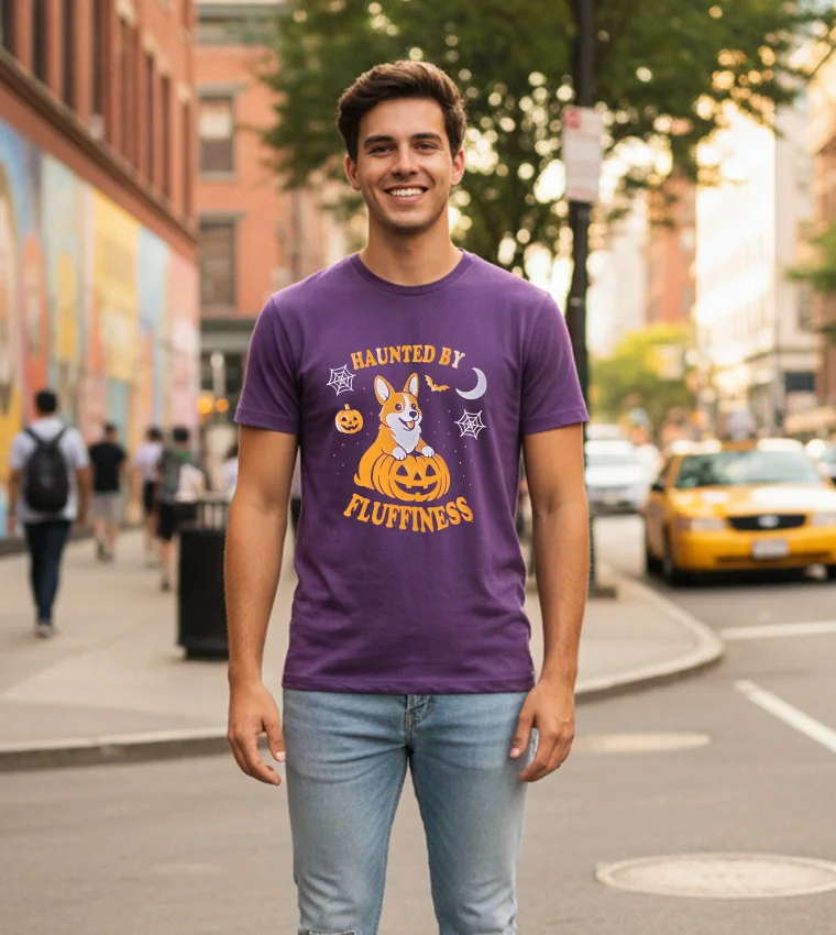 Now, let’s zoom in on that adorable, slightly spooky graphic: the “Haunted By Fluffiness” design. It’s not about gore or fright; it’s about a charming, perhaps slightly bewildered, ghost being utterly overwhelmed by something unexpectedly soft and cuddly. This subtle humor is what sets it apart, allowing you to show off your playful side without going full haunted house. Wearing this shirt isn’t just about fashion; it’s a statement. It’s a quiet declaration of your love for lighthearted fun, an instant mood booster for yourself and anyone who catches a glimpse. To keep that delightful design vibrant and the fabric soft, simply wash it inside out with cold water and tumble dry low. This shirt isn’t just for a single event; it’s a trusty companion for every autumn adventure, a reminder to find joy in the silly moments.