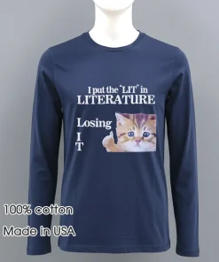 My I Put The Lit In Literature Losing It Cat Shirt from Teeloveusa arrived quicker than I expected – seriously, just 4 days from order to doorstep, with free shipping too! It’s such a relief not to wait ages, and I always wonder about returns, but seeing so many happy reviews made me confident. My friend, Sarah, got hers even faster, raving about the quality. This tee has become my go-to for comfy weekend reads and coffee runs. It just feels right!