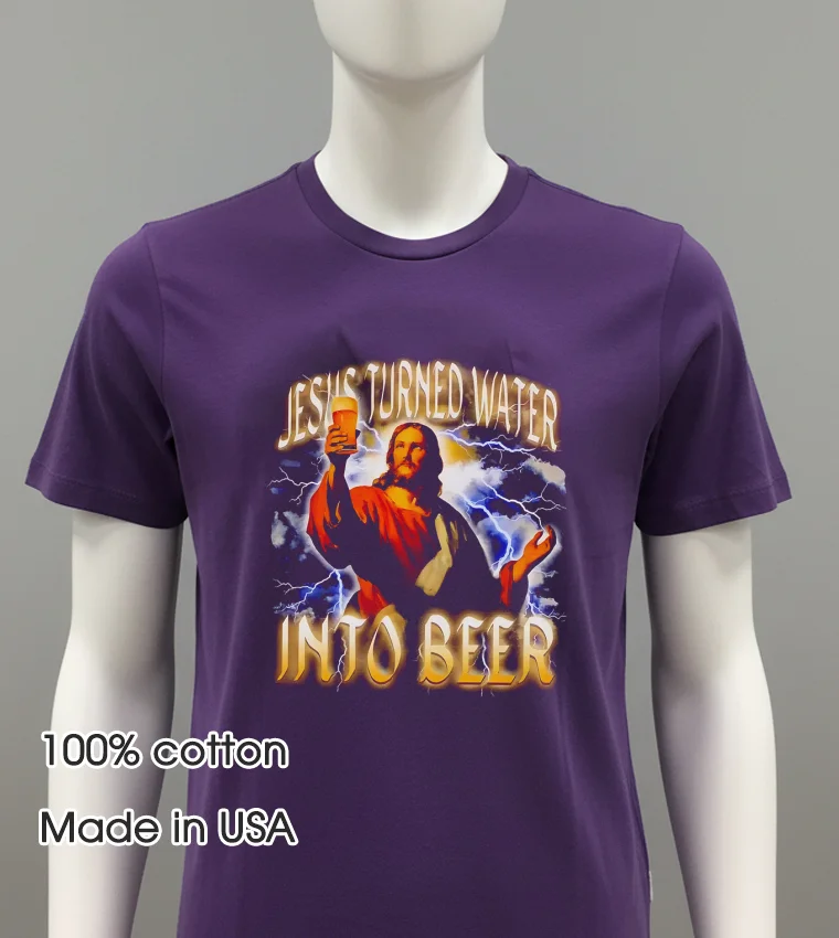 #JesusTurnedWaterIntoBeer #FunnyTshirt #AmericanStreetwear #VintageGraphicTee #Teeloveusa