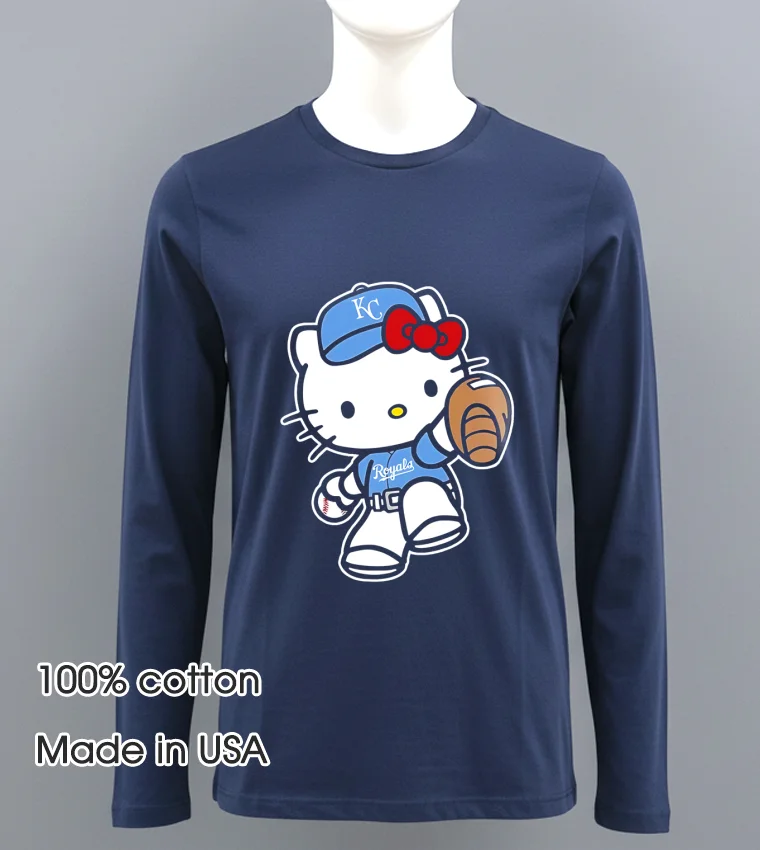 What really makes this tee special, beyond the playful mashup, is the thoughtful design. It’s not just a logo slapped on a shirt; it’s an artistic blend where Hello Kitty, with her iconic bow, is subtly integrated into the classic Royals emblem. The colors pop, vibrant but not overwhelming, ensuring it pairs effortlessly with almost anything in your closet. We’re talking about a tee that feels incredible against your skin – soft, breathable, perfect for a sunny day at the ballgame or just lounging around. The cut is modern American classic, a relaxed fit that’s both flattering and comfortable, ideal for layering under a denim jacket or pairing with your favorite distressed jeans or even a chic midi skirt for an unexpected street style moment. Seriously, you can dress it up or down, it’s that versatile. This isn’t just a purchase; it’s an investment in a piece of fan history that’s also undeniably stylish. Perfect gift for the Royals fan, the Hello Kitty enthusiast, or anyone who appreciates a unique, high-quality graphic tee. Don’t miss out on this one!