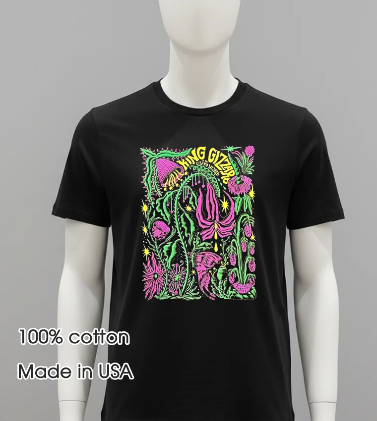 Look closely at that vibrant, intricate artwork on the shirt—it’s more than just a band logo. It captures the energy and a bit of that surreal Gizzard magic, doesn’t it? It’s a talking point, a subtle nod to those in the know. You’ll love the way this tee drapes; it’s not stiff, not flimsy, just right. Made from premium, soft cotton, it feels like an old favorite from the first wear, breathable enough for a summer festival or layering up when the weather turns cool. Pair it with cargo pants for that authentic streetwear vibe, or tuck it into some high-waisted jeans for a casual-cool look. Seriously, you can’t go wrong. Buy it now! Or hey, it’s the perfect gift for the King Gizzard fan in your life.