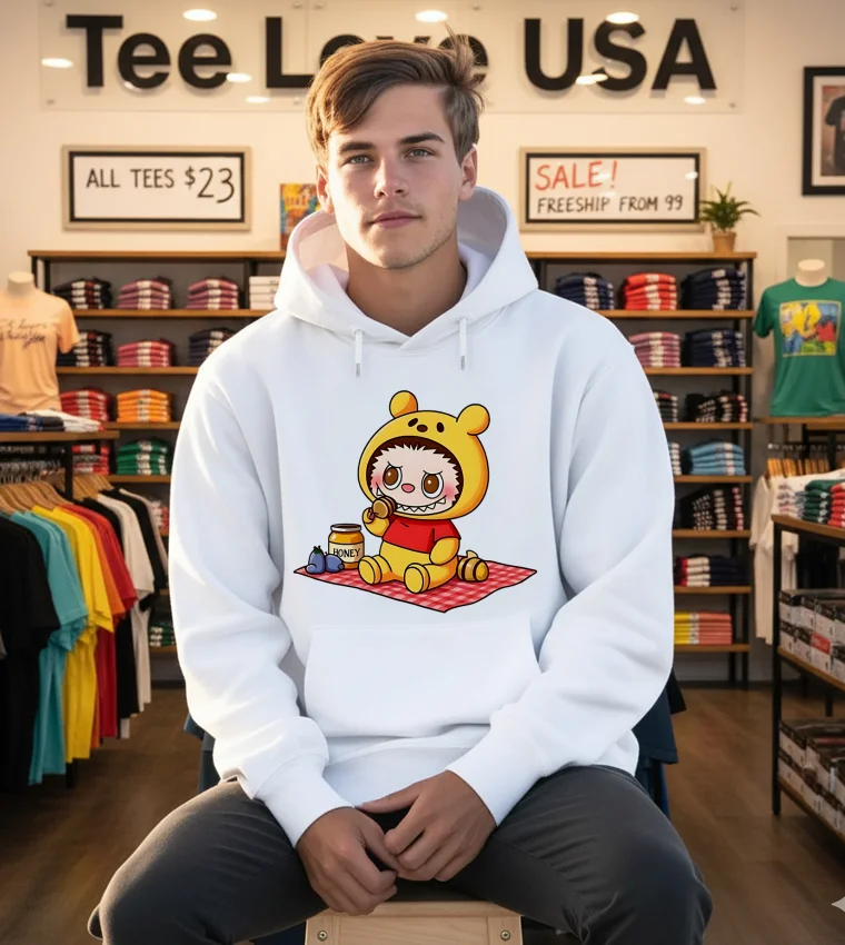 Okay, so picture this: it’s a Tuesday, I’m scrolling through online shops – you know, the usual procrastination – and BAM! There it is. A Labubu Pooh Bear shirt. Not just any Pooh Bear, mind you, but one with this utterly charming, almost mischievous glint in his eye, mid-honey-jar-devour. I nearly choked on my lukewarm coffee. It wasn’t the usual saccharine-sweet Pooh; this felt different, edgier somehow, thanks to Labubu’s signature style. The colors were muted, a little vintage, which added to the overall quirky appeal. It instantly reminded me of a slightly rebellious childhood friend, the one who always had a secret stash of something delicious.