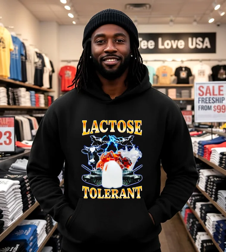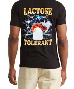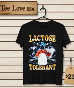 Now, let’s talk about the shirt itself. Just look at that lightning graphic – it’s not just a cool design, it’s a flash of brilliance, a little wink, signaling that you’re in on the joke, owning your dietary choice with flair. The lightning bolt isn’t just a design; it’s practically a superpower symbol for anyone embracing their lactose tolerant status. The advantages are clear: you get a conversation starter, a comfy fit, and a dose of confidence all rolled into one. Oh, and the feel? Seriously, it’s dreamy. Crafted from 100% American Cotton, it’s incredibly soft, stretchy, and so breathable you’ll forget you’re even wearing it. It drapes just right, offering that perfect vintage, relaxed vibe that’s so in right now. Style it with ripped jeans and your favorite sneakers for a classic streetwear look, or tuck it into a high-waisted skirt for a more playful, American-casual aesthetic. This shirt isn’t just an item of clothing; it’s an experience, a little ray of sunshine for your wardrobe. Go ahead, make it yours today! Buy now, or snag it as the perfect gift for that witty friend who loves a good laugh and comfy clothes!