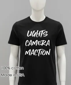 That’s where the Lights Camera Maction Shirt truly shone. It’s more than just a phrase; it’s a feeling. It’s like, ‘Okay world, I’m here, ready for whatever adventure you throw my way.’ This isn’t just about looking good for the ‘gram; it’s about feeling authentic. In today’s fashion, where comfort and self-expression reign, this shirt hits all the right notes. It speaks to ‘effortless chic,’ blending with the sustainable fashion movement by being a versatile piece you’ll wear season after season. Forget fast fashion; this is about investing in pieces that genuinely reflect your personality.