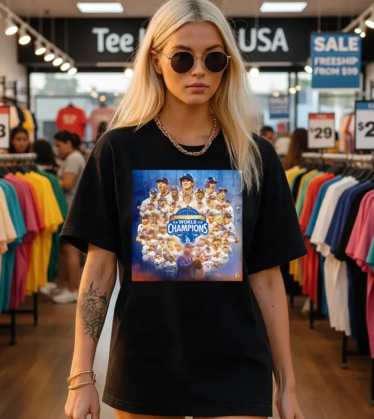 Picture this: It’s late 2025. The air is electric, buzzing with the kind of collective anticipation that only a potential back-to-back championship can create. Everyone’s talking about it – from sports commentators on ESPN to that viral TikTok trend “Dodger Blue for Life,” where fans are showing off their best team-inspired outfits. I remember scrolling through Instagram last week, and even my favorite style influencer, who usually preaches “quiet luxury” and minimalist aesthetics, posted a selfie wearing a vintage Dodgers cap, subtly hinting that even high fashion can embrace authentic fan gear. The shift in style has been undeniable; while polished looks are still in, there’s a massive surge in expressing identity through comfortable, yet stylish pieces. Think elevated athleisure, where your go-to graphic tee isn’t just for the couch anymore, it’s a statement. This isn’t just about celebrating if they win, it’s about manifesting that victory, wearing your heart on your sleeve, literally. This Los Angeles Dodgers Back To Back World Champions 2024 2025 Team Players Shirt isn’t just fabric; it’s a future heirloom, a conversation starter at the bar, the perfect outfit for a game day barbecue, or even a casual Friday at work. It taps into that incredible energy of wanting to be part of something bigger, a testament to enduring team loyalty amidst changing fashion landscapes where comfort and personal expression reign supreme.