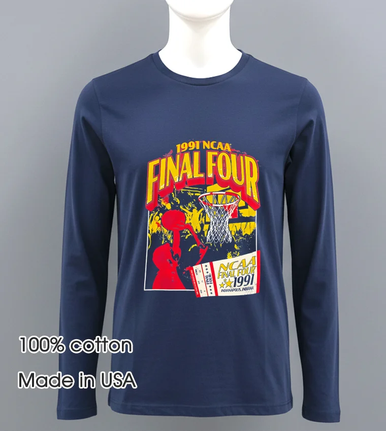 Let’s talk about that design for a second – the bold, classic lettering and iconic imagery celebrating the 1991 Final Four in Indianapolis. It’s just… chef’s kiss! It immediately grabs your eye, evoking that specific era of sports glory without being over-the-top. The advantage? It’s a guaranteed conversation starter, whether you’re at a local brewery or just running errands. Made from 100% American Cotton, this tee feels incredibly soft against the skin, with just the right amount of stretch. It’s got that relaxed, lived-in feel from the first wear. Style-wise, it’s a versatile champion! Throw it on with distressed denim and sneakers for a quintessential American streetwear vibe, or layer it under an open plaid shirt for a cozy, vintage look. Seriously, it just works with everything. Perfect gift for the sports enthusiast or anyone who appreciates a touch of retro cool!
