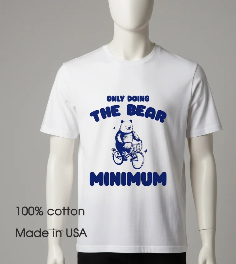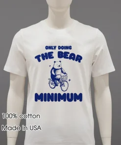 Okay, so let’s talk about the vibe behind the Only Doing The Bear Minimum Shirt. Remember that viral TikTok sound about “doing the bare minimum and still killing it”? It perfectly captured the shift from hustle culture to something more balanced, not slacking, but reclaiming peace after recent craziness. This isn’t just a phrase; it’s a mood. It speaks to juggling work-from-home life, kids, or just trying to keep up without burning out. It’s for the mom tackling her to-do list after school drop-off, or the college student needing to look presentable after an all-nighter. Even for me, after a week of trying to keep up with “dopamine dressing” and maximalist trends, sometimes I just want authentic and chill. Fashion today, especially in the US, leans hard into “comfort core” – less about flashy logos, more about how clothes make you feel. There’s a huge surge in vintage revival, with classic tees and relaxed fits dominating streetwear. This tee fits that narrative perfectly. It’s that blend of Y2K aesthetic and modern self-care. It says, “I’m here, present, but not operating at 150%.” It’s for anyone embracing “main character energy” while valuing downtime. Sometimes, just getting through the day is a victory, and that’s totally okay.