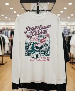 You know that feeling, right? When you’re heading out to a family gathering, maybe a big holiday dinner like Thanksgiving or even just a casual Sunday brunch with your in-laws, and you just know someone’s about to unleash a story from your past you’d rather keep buried? Or perhaps you’re at a local open mic night, supporting a friend’s questionable stand-up debut, and the cringe factor is building faster than a flash mob in Times Square. It’s for those exact moments that the “Please Please Please I Beg You Don’t Embarrass Me Shirt” feels less like a shirt and more like a public service announcement. Imagine, just last week, comedian John Mulaney, during a new Netflix special teaser, joked about his own family’s capacity for public oversharing. It hit home for so many of us! That tee is your silent plea, your wearable shield, a preemptive strike against awkward anecdotes. It’s perfect for that moment when your Aunt Carol starts recounting your questionable fashion choices from high school at your niece’s graduation party, or when your dad, bless his heart, tries to explain TikTok to your Gen Z cousins using outdated slang. This isn’t just about avoiding embarrassment; it’s about owning the narrative, or at least attempting to, with a touch of humor and a whole lot of relatable charm. It’s for anyone who’s ever braced themselves for an “Oh, remember when…” moment, whether it’s at a Fourth of July BBQ or a school play.