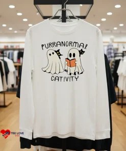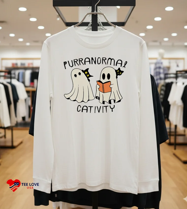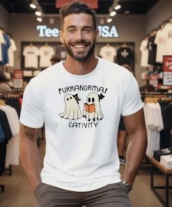 Ugh, this morning was a disaster. Spilled coffee all over my new shirt – seriously, the universe is against me today – then got stuck in traffic listening to some woman on her phone screaming about her cat, my phone kept buzzing with work emails, I grabbed a half-eaten bagel from the counter (don’t judge!), and I was already running late for that important meeting. Then, this guy dropped a whole stack of files, scattering papers everywhere, and one landed right in my lap. It had a picture of a ridiculously fluffy cat dressed in a tiny witch’s hat, honestly it was the cutest thing I’d seen all week, completely changing the tone of my terrible morning. So yeah, needed a pick-me-up, and that’s when I saw it online – the Purranormal Activity Halloween Ghost Shirt.