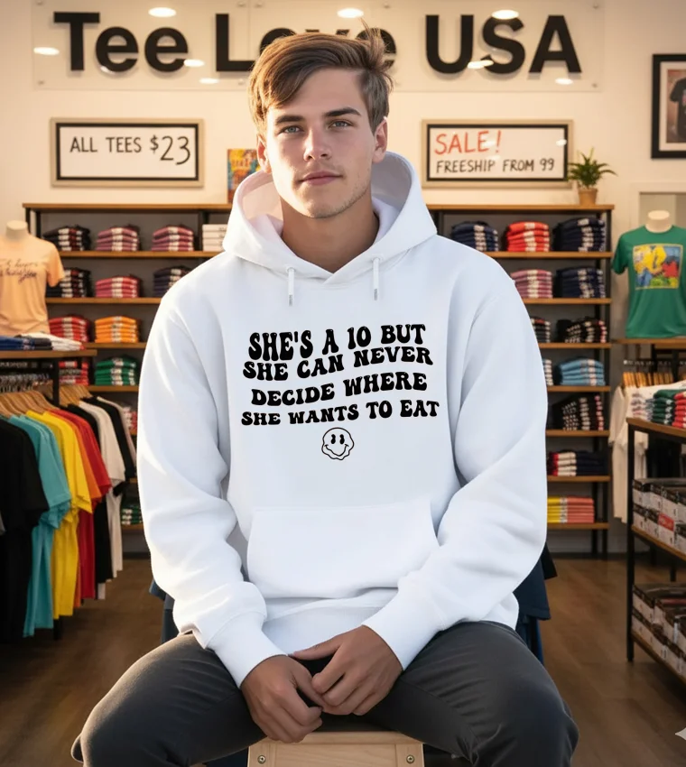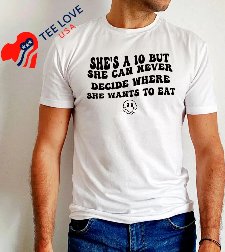 So, I was at the mall the other day, right? Completely unplanned, just one of those spontaneous “I need to get out of the house” kind of afternoons. And what do I stumble upon? This t-shirt. Seriously, it was like a tiny, brightly colored beacon in a sea of beige. She’s a 10, But She Can Never Decide Where She Wants to Eat – it proclaimed in bold, slightly off-kilter lettering. There was a goofy, lopsided smiley face underneath, the kind you’d draw when you were seven and still mastering the art of symmetrical circles. I chuckled. It was oddly specific, relatable in that hilarious, “Oh my god, me too!” kind of way. It’s the kind of humor that speaks to the eternal struggle of indecision; the sheer mental exhaustion of scrolling through endless food delivery apps, only to end up ordering pizza because it’s… easy.