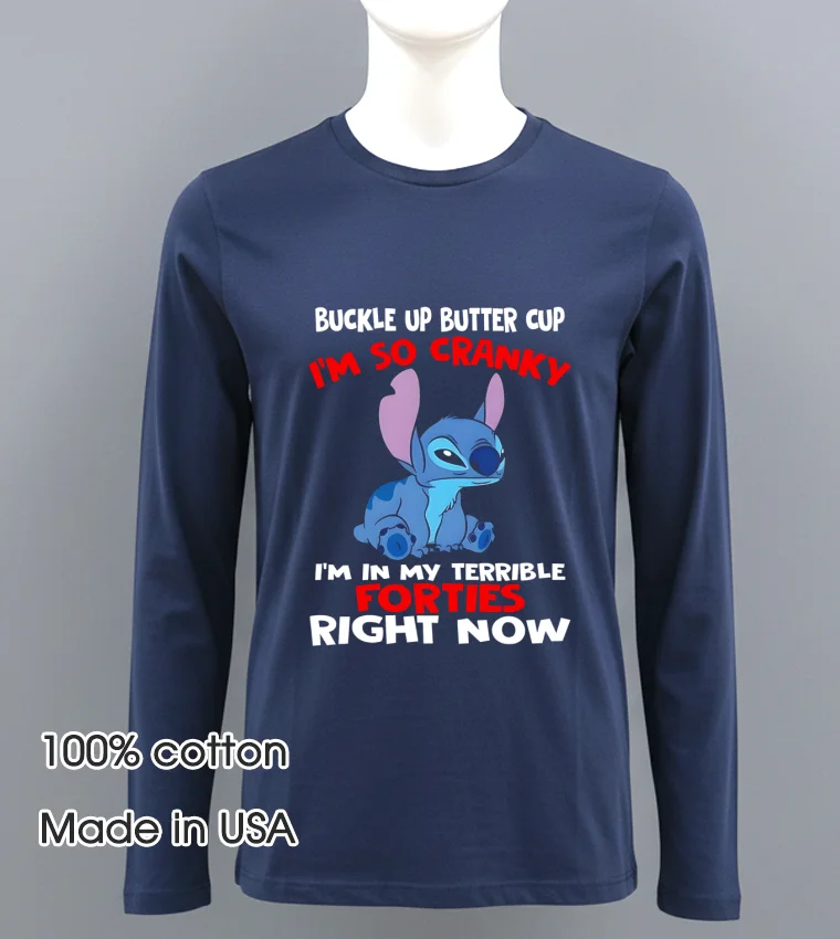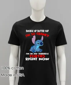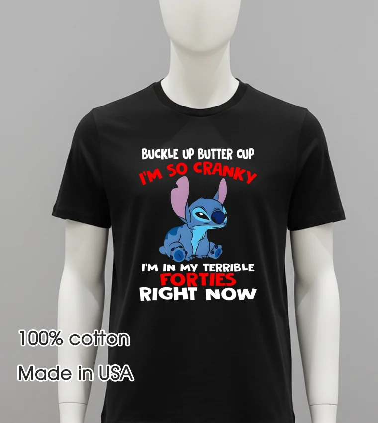 Living in my terrible forties, finding something that truly speaks to my soul and fits my lifestyle is a rare joy. Just yesterday, my Stitch Buckle Up Butter Cup I M So Cranky I M In My Terrible Forties Right Now Shirt arrived from Teeloveusa – unbelievably fast, too, within 3 days, and with free shipping! I always worry about online orders, but their glowing reviews gave me such peace of mind. The sheer joy of opening that package was immediate; it’s become my new go-to. I do wonder about your exact return policy, just in case, but honestly, with how soft and perfectly fitting this tee is, I don’t think I’ll ever need it!