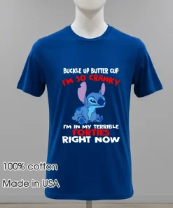 Ready to embrace your ‘terrible forties’ with a laugh and unmatched comfort? Don’t you deserve a t-shirt that truly speaks to your soul, delivered quickly and for free? We’re dedicated to providing high-quality, vibrant tees like the Stitch Buckle Up Butter Cup I M So Cranky I M In My Terrible Forties Right Now Shirt, shipped right to your door. What are you waiting for? Find your next favorite shirt at Teeloveusa today!