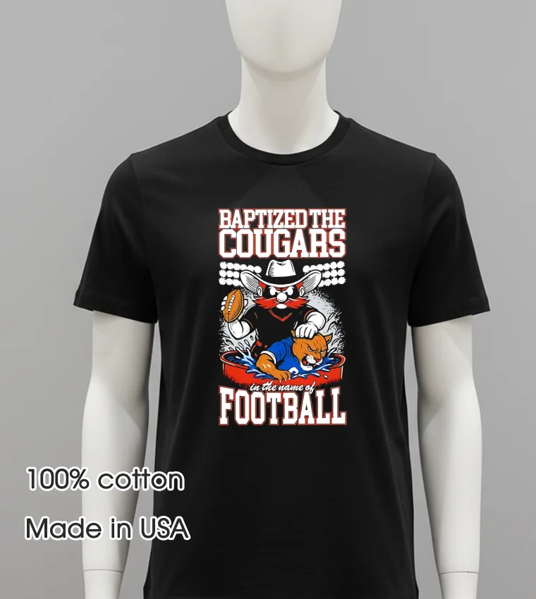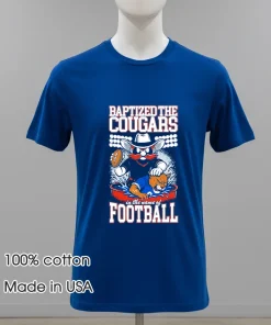 Let’s dive into the artistry of this tee. The graphic itself, those bold words “Baptized The Cougars In The Name Of Football,” isn’t just printed; it feels like it’s been soaked into the fabric, with a slightly distressed, worn-in effect that gives it that genuine vintage vibe. It’s not some flimsy iron-on that’ll peel after two washes, you know? This intentional design choice instantly elevates it from a mere fan shirt to a fashion piece. The advantage? You get that cool, lived-in look right out of the package, saving you years of trying to achieve that perfect fade. It’s made from a super soft, breathable fabric that feels fantastic against your skin – none of that scratchy, stiff stuff. The fit is comfortably relaxed, perfect for layering or wearing on its own. Pair it with ripped denim and some fresh sneakers for a classic streetwear look, or throw it on with khaki shorts and sandals for a laid-back summer day. Honestly, it’s versatile. Thinking of a gift for that die-hard Red Raider fan? This is it!