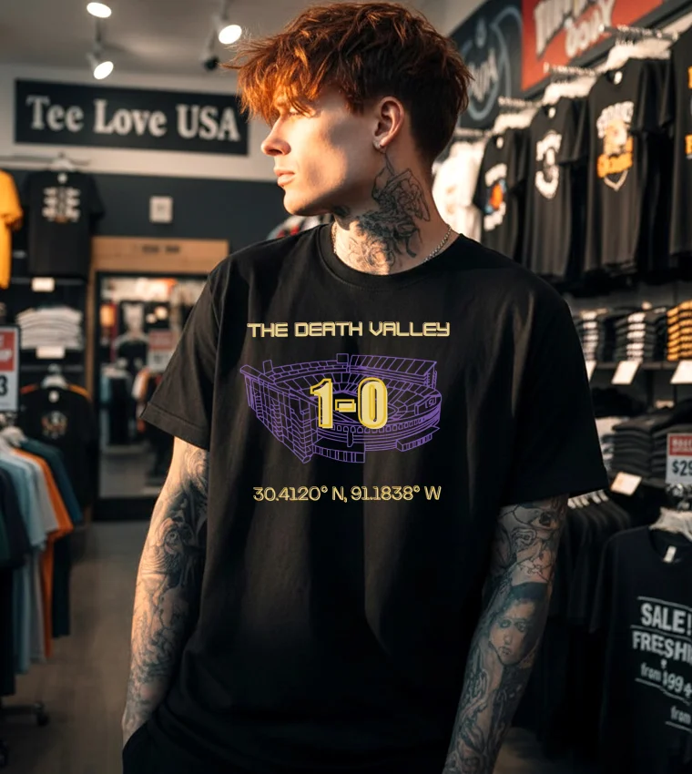 The coordinates themselves, printed in this cool, almost metallic ink…they remind me of… well, I don’t know… constellations? It’s like a tiny map to football glory, hidden right there on the The Death Valley 1 0 LSU Stadium Coordinates Shirt. It’s so subtle, yet so powerfully meaningful.