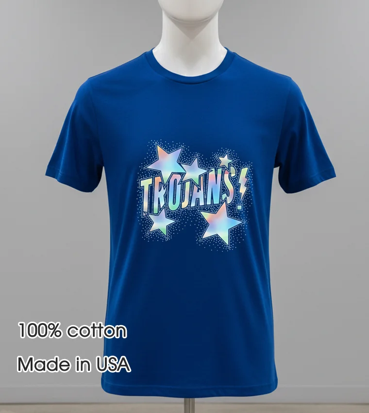 Why wait for comfort and style when it’s just a click away? Don’t you deserve a tee that truly expresses you, delivered right to your door with lightning speed? Dive into the quality of Teeloveusa and experience the difference of a beautifully made Trojans Glitter Effect And Stars Around Style Shirt today. We’re committed to high-quality, beautiful t-shirts, delivered quickly, always.