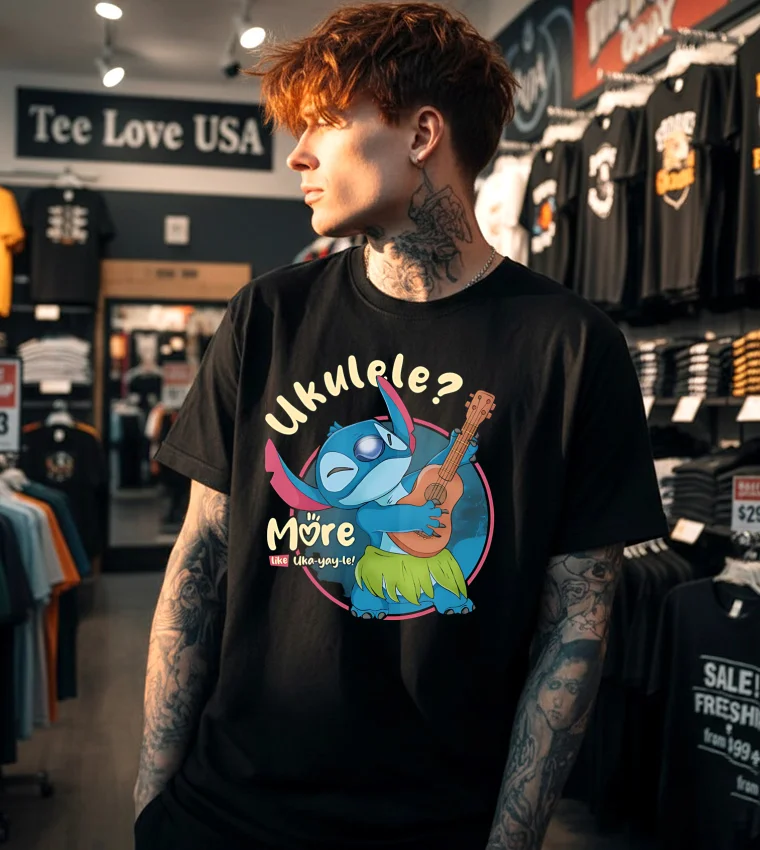 The design is clever; it manages to be cute, funny, and somehow relatable all at once. It’s not just a shirt with a ukulele on it. It’s a statement. It’s a nod to the struggle, the joy, the downright silliness of learning a new instrument. And it’s a conversation starter, believe me. I’ve had more than one person stop me in the street just to comment on it. Most people get the reference, which is always rewarding. The few who don’t? Well, it gives me a great excuse to explain the joys—and occasional frustrations—of playing the ukulele, Stitch and all.